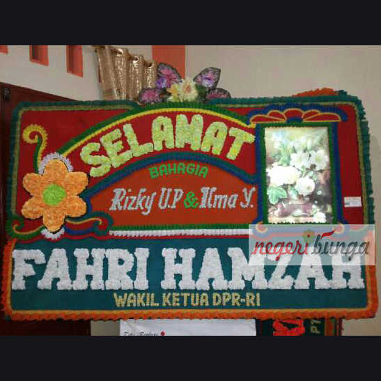 Bunga yang dirangkai yaitu krisan, aster, garbera, jimla dan bunga lainnya. Kami menggunakan bunga baru (fresh) dengan warna disesuaikan moment.
