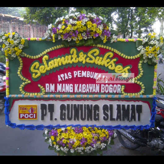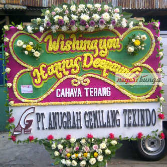 Bunga yang dirangkai yaitu krisan, aster, garbera, jimla dan bunga lainnya. Kami menggunakan bunga baru (fresh) dengan warna disesuaikan moment.