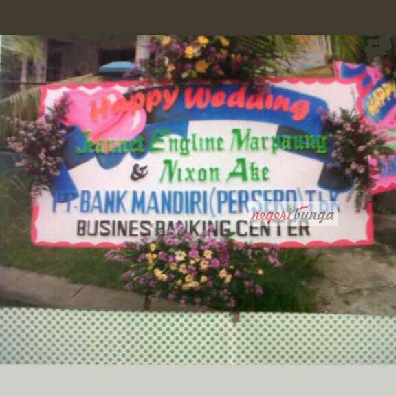 Bunga yang dirangkai yaitu krisan, aster, garbera, jimla dan bunga lainnya. Kami menggunakan bunga baru (fresh) dengan warna disesuaikan moment.