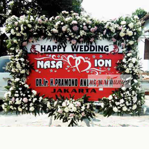 Bunga yang dirangkai yaitu krisan, aster, garbera, jimla dan bunga lainnya. Kami menggunakan bunga baru (fresh) dengan warna disesuaikan moment.