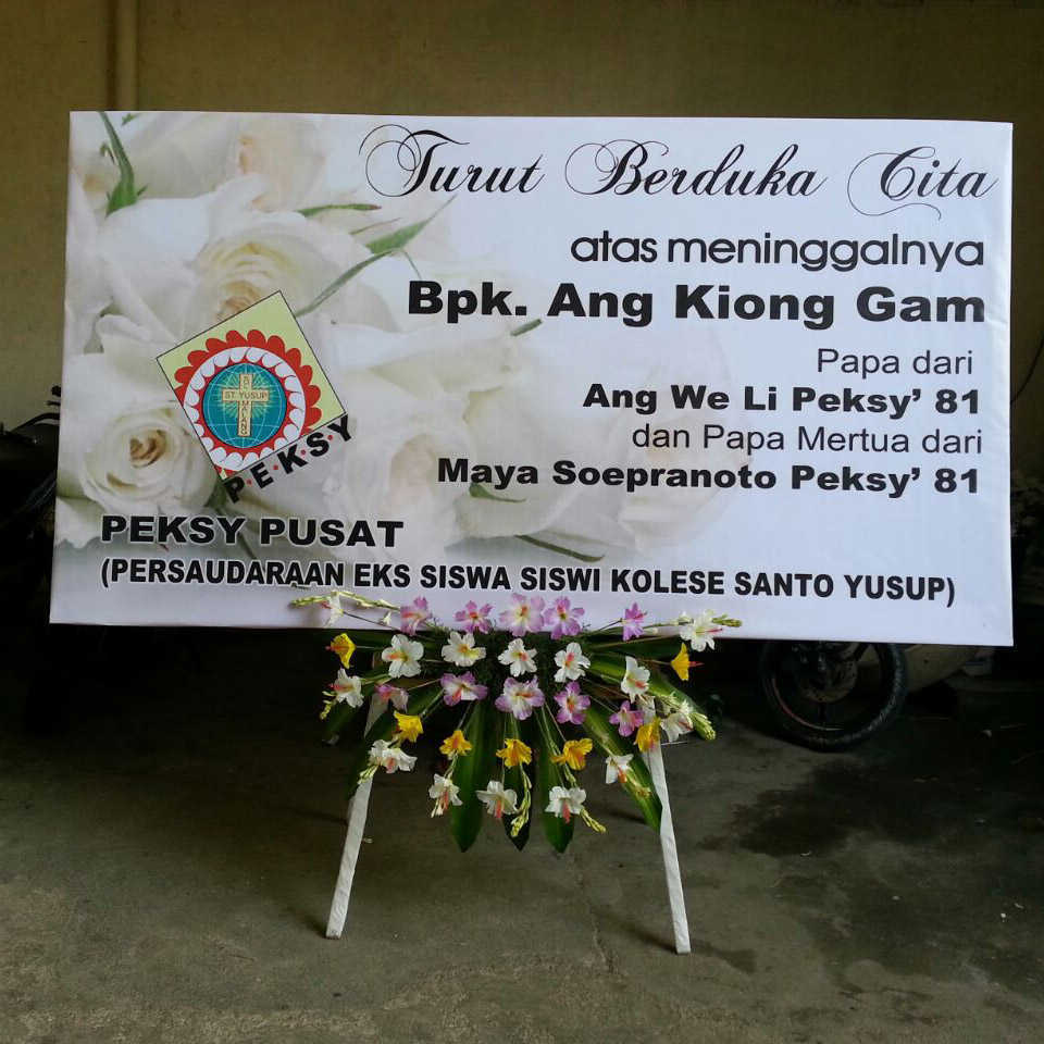 Bunga yang dirangkai yaitu krisan, aster, garbera, jimla dan bunga lainnya. Kami menggunakan bunga baru (fresh) dengan warna disesuaikan moment.