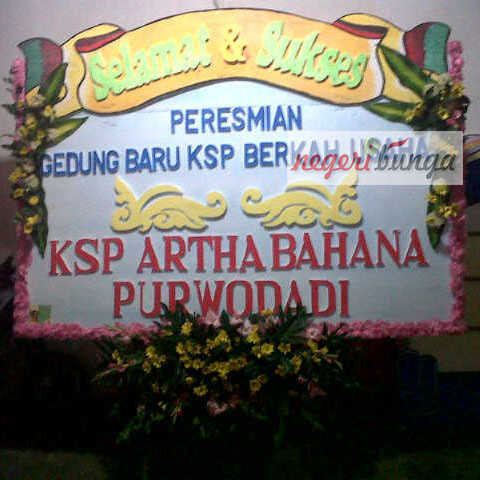 Bunga yang dirangkai yaitu krisan, aster, garbera, jimla dan bunga lainnya. Kami menggunakan bunga baru (fresh) dengan warna disesuaikan moment.