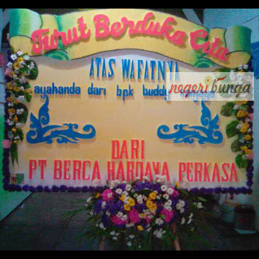 Bunga yang dirangkai yaitu krisan, aster, garbera, jimla dan bunga lainnya. Kami menggunakan bunga baru (fresh) dengan warna disesuaikan moment.