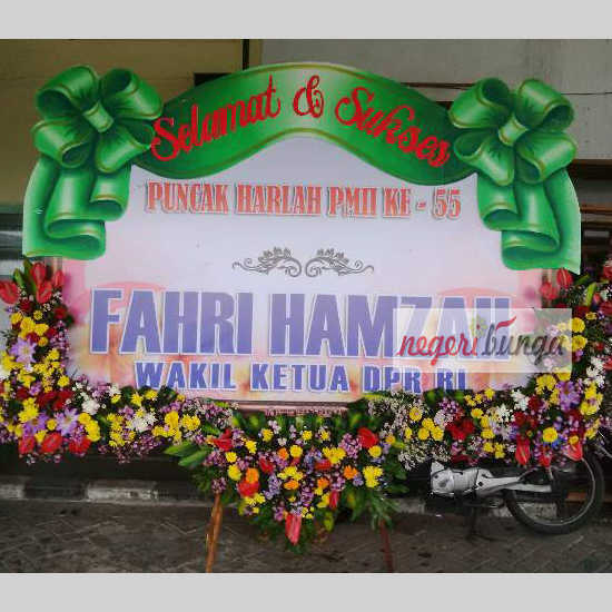 Bunga yang dirangkai yaitu krisan, aster, garbera, jimla dan bunga lainnya. Kami menggunakan bunga baru (fresh) dengan warna disesuaikan moment.