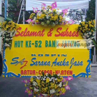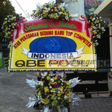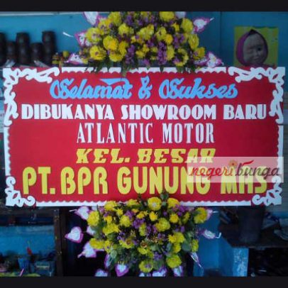 Bunga yang dirangkai yaitu krisan, aster, garbera, jimla dan bunga lainnya. Kami menggunakan bunga baru (fresh) dengan warna disesuaikan moment.