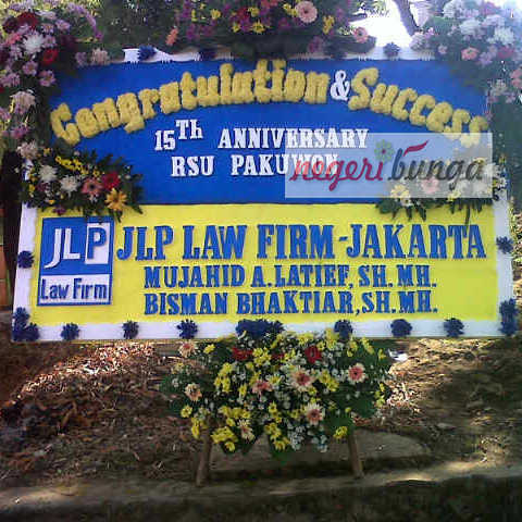 Bunga yang dirangkai yaitu krisan, aster, garbera, jimla dan bunga lainnya. Kami menggunakan bunga baru (fresh) dengan warna disesuaikan moment.